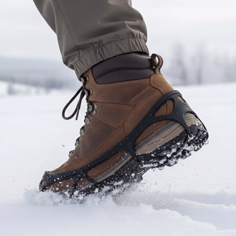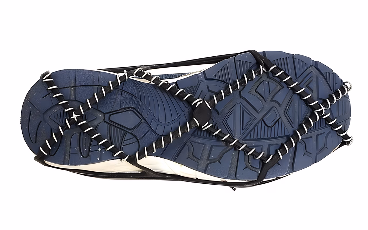 Spirele de oțel durabile oferă aderență puternică pe trotuarele înghețate. Simte-te în siguranță deplasându-te pe zăpadă bătătorită sau suprafețe înghețate.
