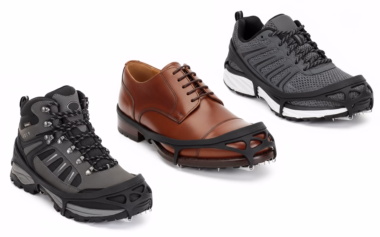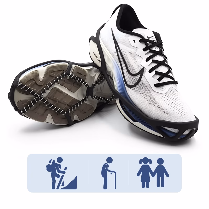 Acoperirile flexibile se întind pentru a se potrivi cu adidași, pantofi de drumeție sau bocanci. Ușor de folosit de către toate vârstele, atât bărbați cât și femei.