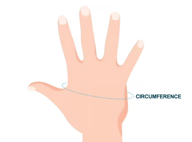 - 1. Înfășoară banda de măsurat în jurul palmei, chiar sub articulații.