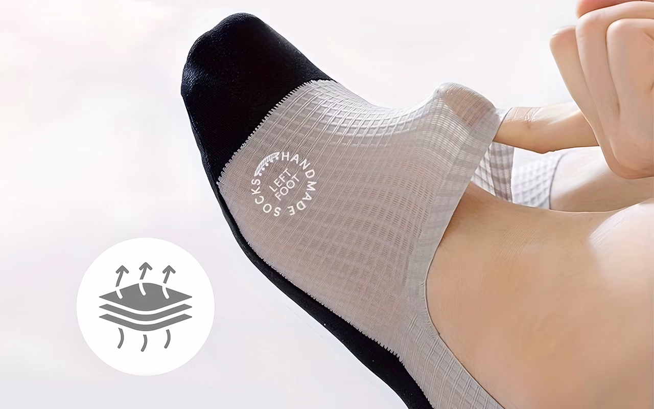 Materialul tip plasă chiar funcționează. Le-am purtat la ora de sport și picioarele mele nu au mirosit deloc. Se potrivesc perfect!
