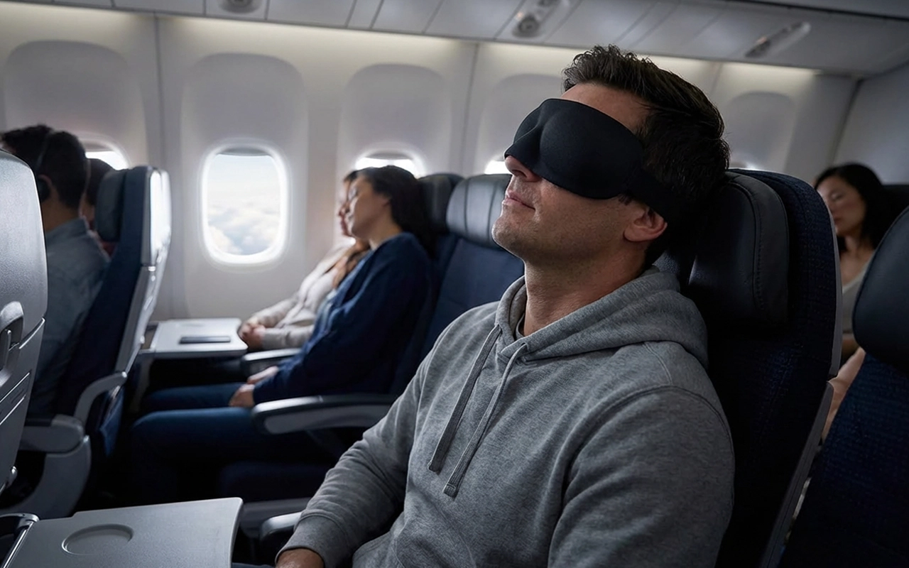 Călătoresc mereu în interes de serviciu. Această mică mască stă permanent în bagajul meu și transformă camerele de hotel luminoase într-o peșteră liniștită, astfel încât să pot adormi repede.
