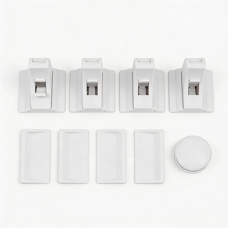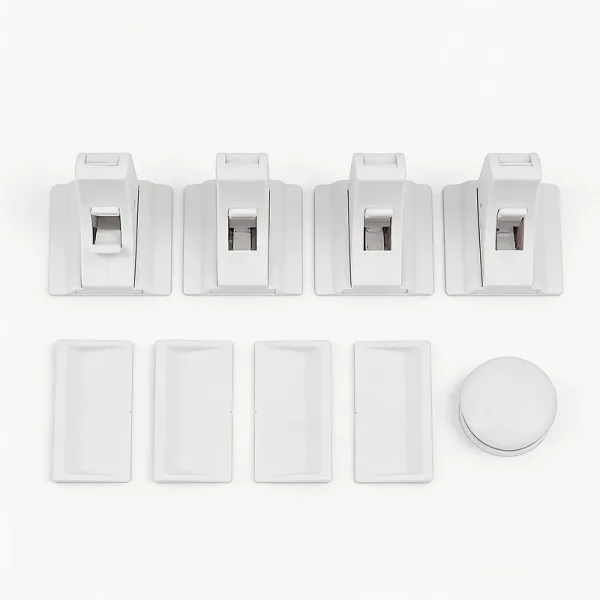 Montați fiecare încuietoare în doar câteva minute. Adezivul puternic fixează ferm fiecare piesă fără a lăsa urme.