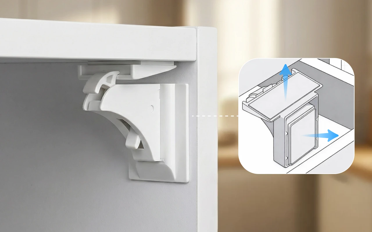 Mânuțele mici explorează rapid, iar accidentele se întâmplă într-o clipă. Încuietorile magnetice de siguranță Ortorex păstrează sertarele și dulapurile bine închise. Nu sunt necesare unelte sau găurire pentru instalare oriunde în casă. Designul ingenios și invizibil menține camerele ordonate și frumoase. Fiecare încuietoare vă oferă liniște sufletească în preajma copiilor curioși.