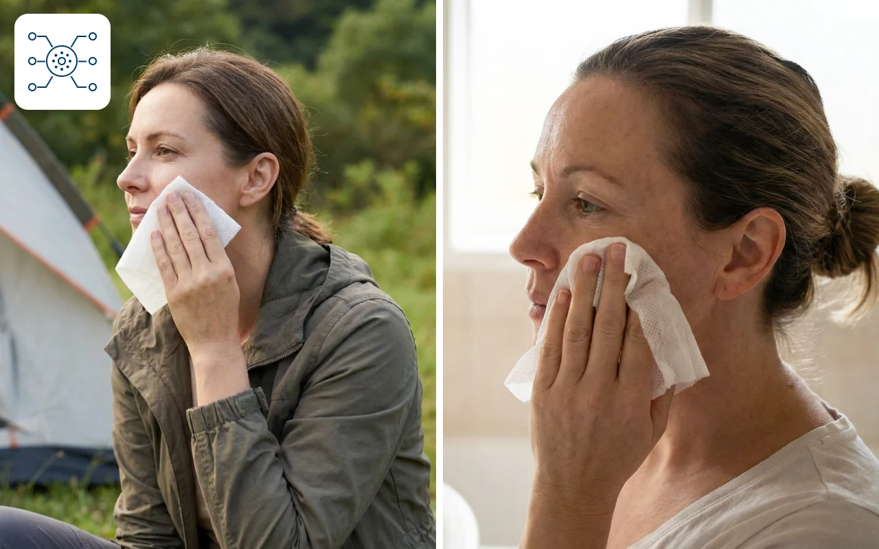 Perfecte pentru spălat, călătorii, sport și frumusețe. Curăță suprafețe, fețe și mâini oriunde, pe loc.