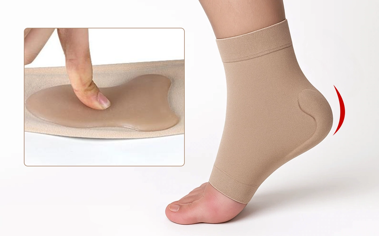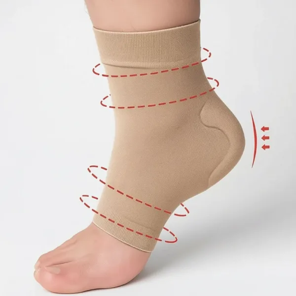Compresia ușoară susține glezna și ajută la prevenirea alunecărilor. Materialul elastic asigură o potrivire strânsă pentru toate mărimile piciorului.