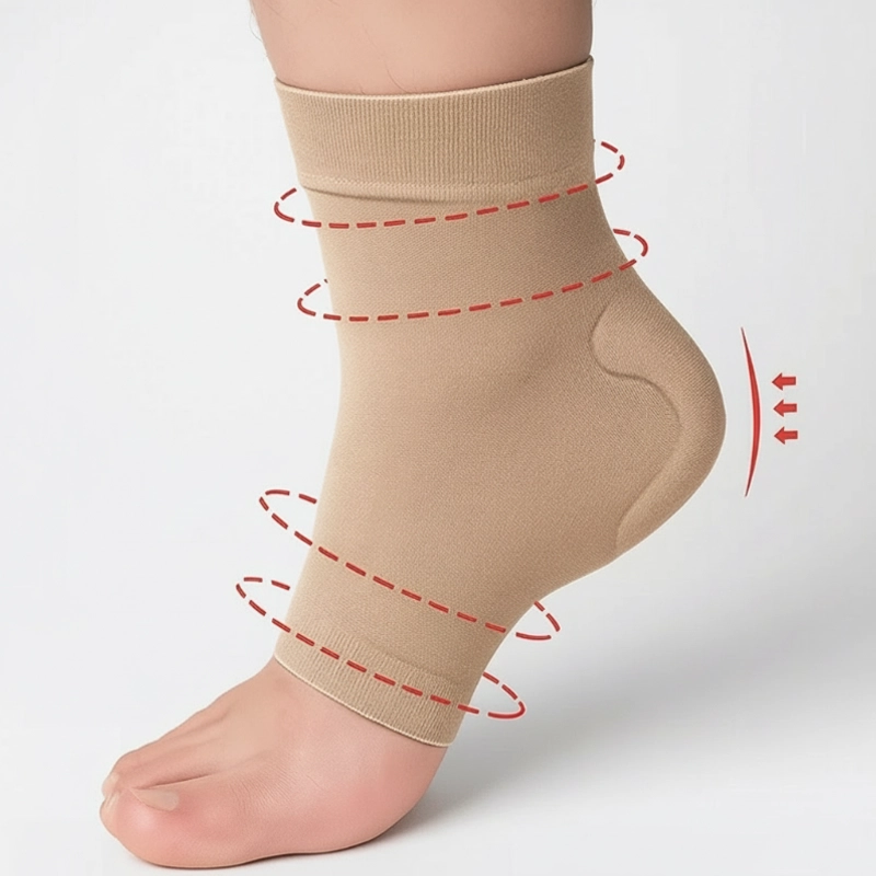 Compresia ușoară susține glezna și ajută la prevenirea alunecărilor. Materialul elastic asigură o potrivire strânsă pentru toate mărimile piciorului.