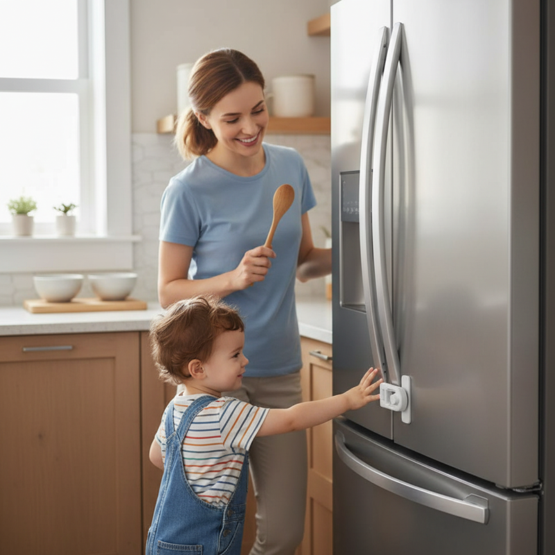 Folosesc acest blocator de frigider la grădinița mea. Se potrivește la diferite tipuri de uși, ține bine toată ziua, iar părinților le place să știe că cei mici nu pot ajunge la resturi de mâncare sau la borcane de sticlă.