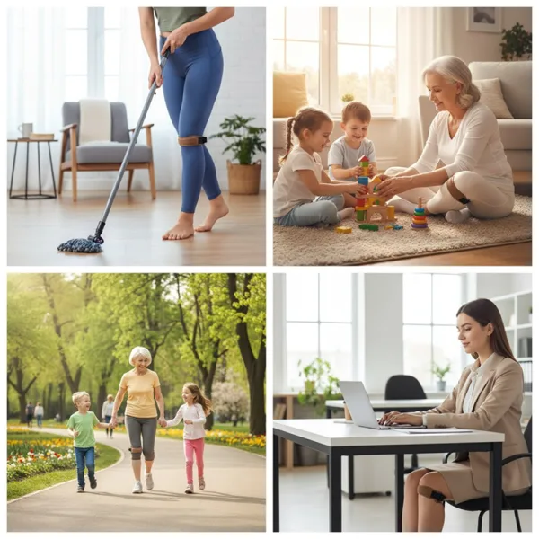 Port banda în timpul plimbărilor lungi cu câinele meu. Genunchii mă dureau la jumătatea drumului, acum termin traseul simțindu-mă stabilă și mult mai relaxată.