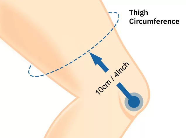 - 1. Îndoaie-ți piciorul la un unghi de 30° și măsoară circumferința coapsei la 10 cm (4'') deasupra rotulei.