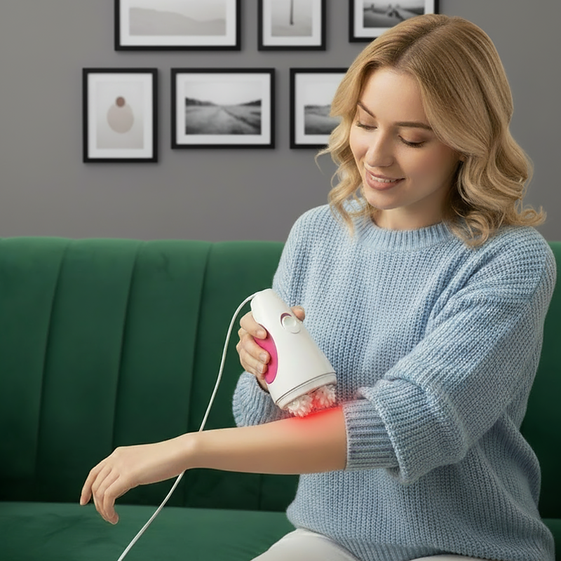 Îmi place foarte mult acest aparat! Pot ajunge cu el la brațe și stomac fără probleme. Lumina roșie este și relaxantă.