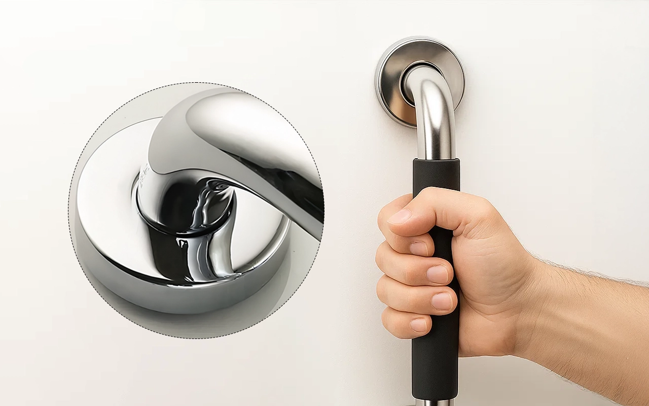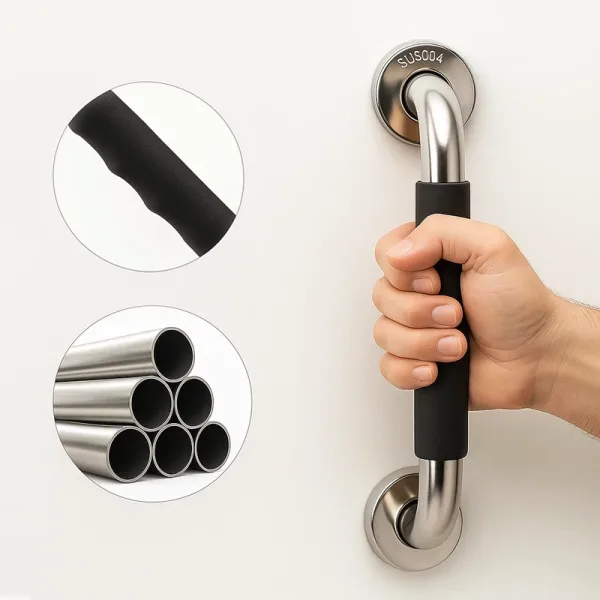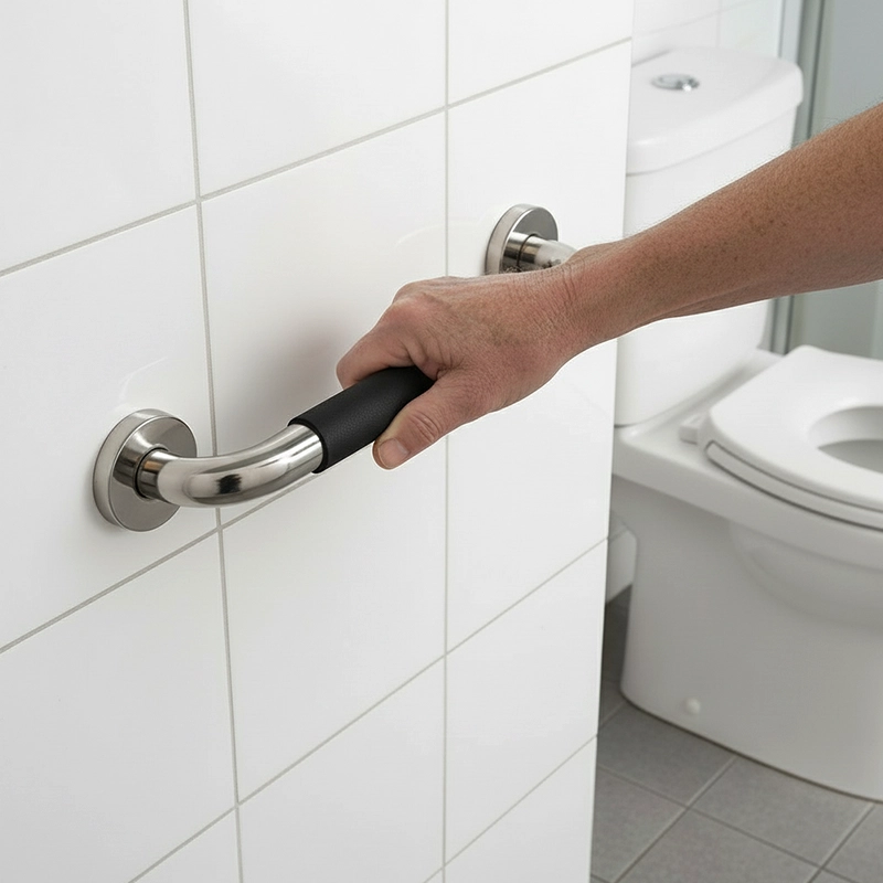 Tatăl meu folosește această bară de sprijin lângă toaletă în fiecare zi. Priza rămâne puternică chiar și când totul este ud. O liniște sufletească extraordinară!