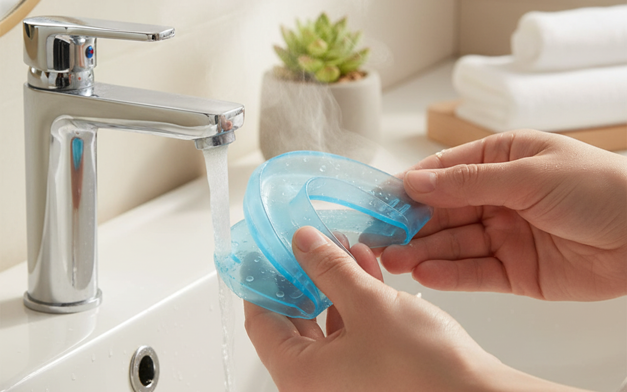 Modelați gelul pe dinți folosind apă caldă. Ajustați potrivirea pentru susținere delicată, fără durere.