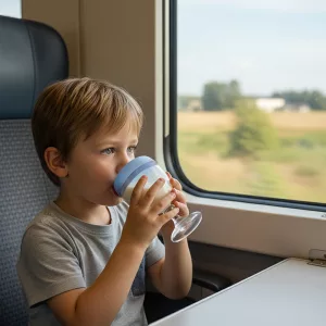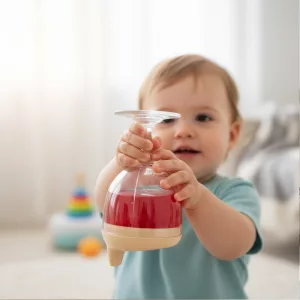 Copiii învață să bea din căni fără frustrare. Designul de tranziție Ortorex susține creșterea independenței.