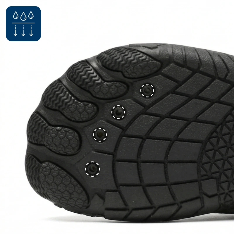 Talpa unică cu cinci degete oferă stabilitate pe suprafețe ude sau denivelate. Rămâi sigur pe tine în timpul sportului, pe plajă sau pe malurile râurilor.