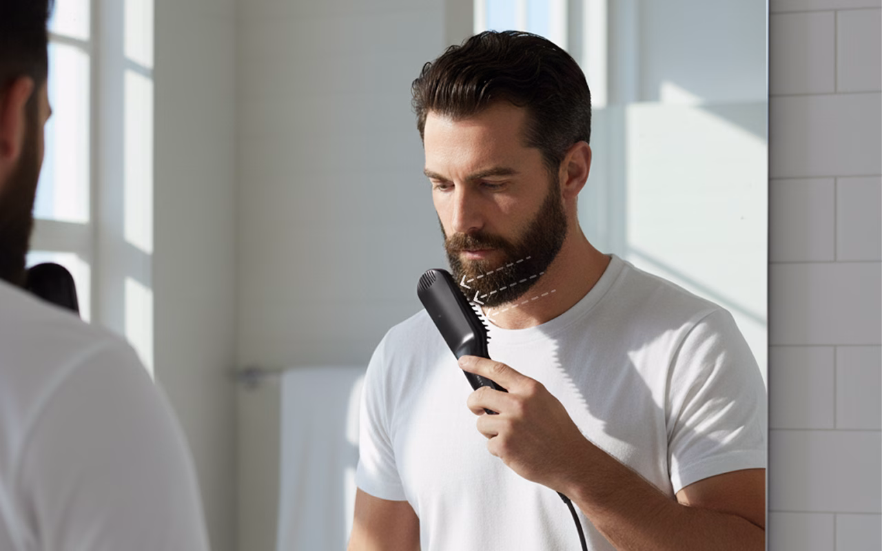 Peria încălzită face ca barba mea deasă să fie mult mai ușor de aranjat. O folosesc pe părul umed și merge grozav în fiecare dimineață!