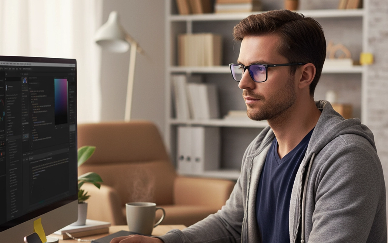 Lucrez până târziu editând poze, iar acești ochelari chiar ajută la ecranele luminoase. Ochii mei nu mai sunt obosiți și arată bine!