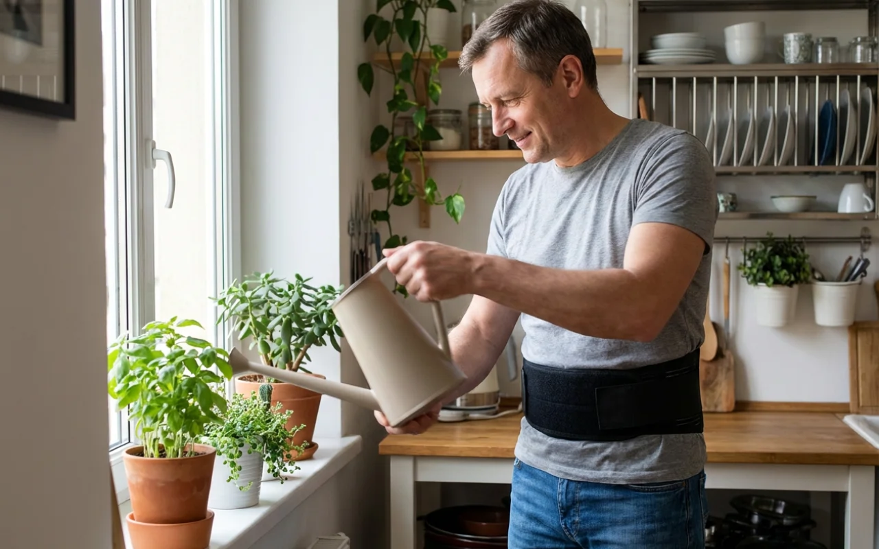 Folosesc orteza când gătesc și fac curățenie. Îmi oferă o susținere caldă și constantă în zona lombară, astfel încât pot termina treburile fără să fie nevoie să mă întind.