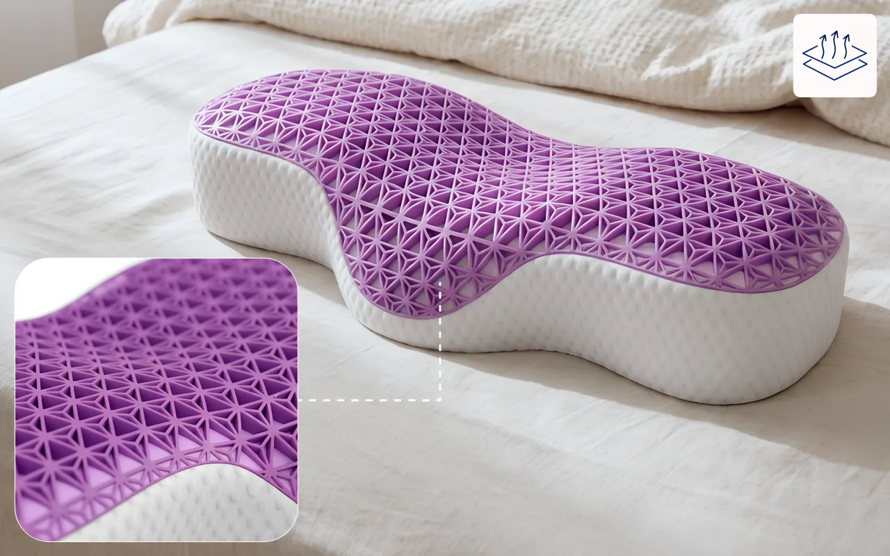 Acest design promovează poziționarea corectă pentru o noapte liniștită. Ajută la reducerea durerii prin susținerea curbelor naturale.