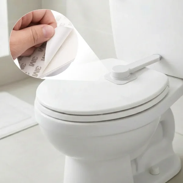Încuietoarea pentru capac pare simplă, dar este chiar rezistentă. Am fost surprinsă de calitate! Face curățenia în baie mult mai ușoară.