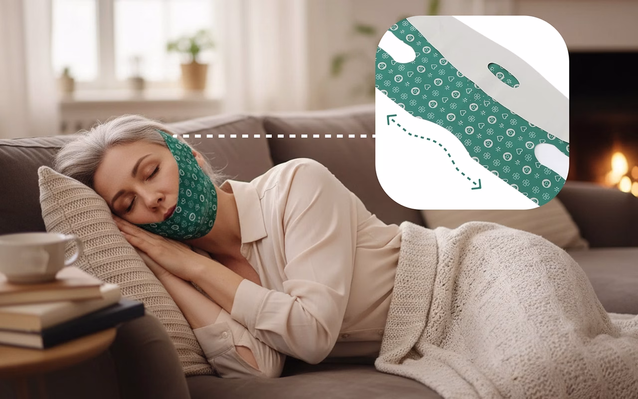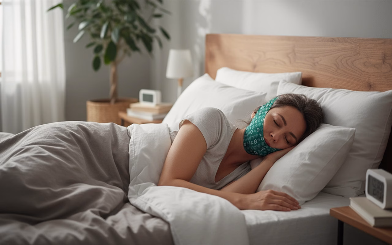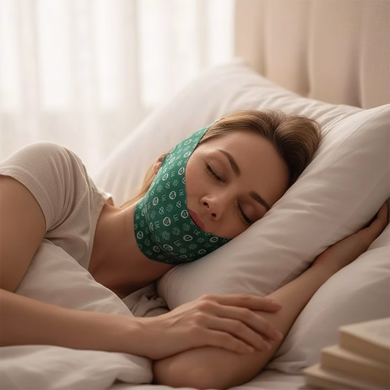 Reduce zgomotul pentru ca toată lumea să se bucure de o oră de culcare liniștită împreună. Banda pentru bărbie Ortorex menține gura închisă pentru a diminua respirația zgomotoasă.