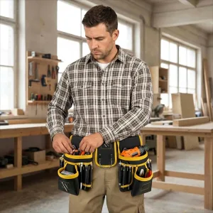 Prietenul meu montează rigips, iar această curea i-a schimbat zilele de lucru. Se mișcă mai repede pentru că are cuțitul, markerul, biții și șuruburile chiar la îndemână.