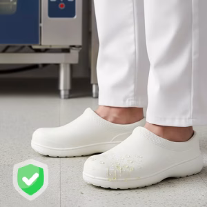 Îmi place cât de ușori sunt acești saboți! Nu mă mai dor picioarele după muncă. Curățarea se face printr-o simplă ștergere. Fără griji de alunecare.