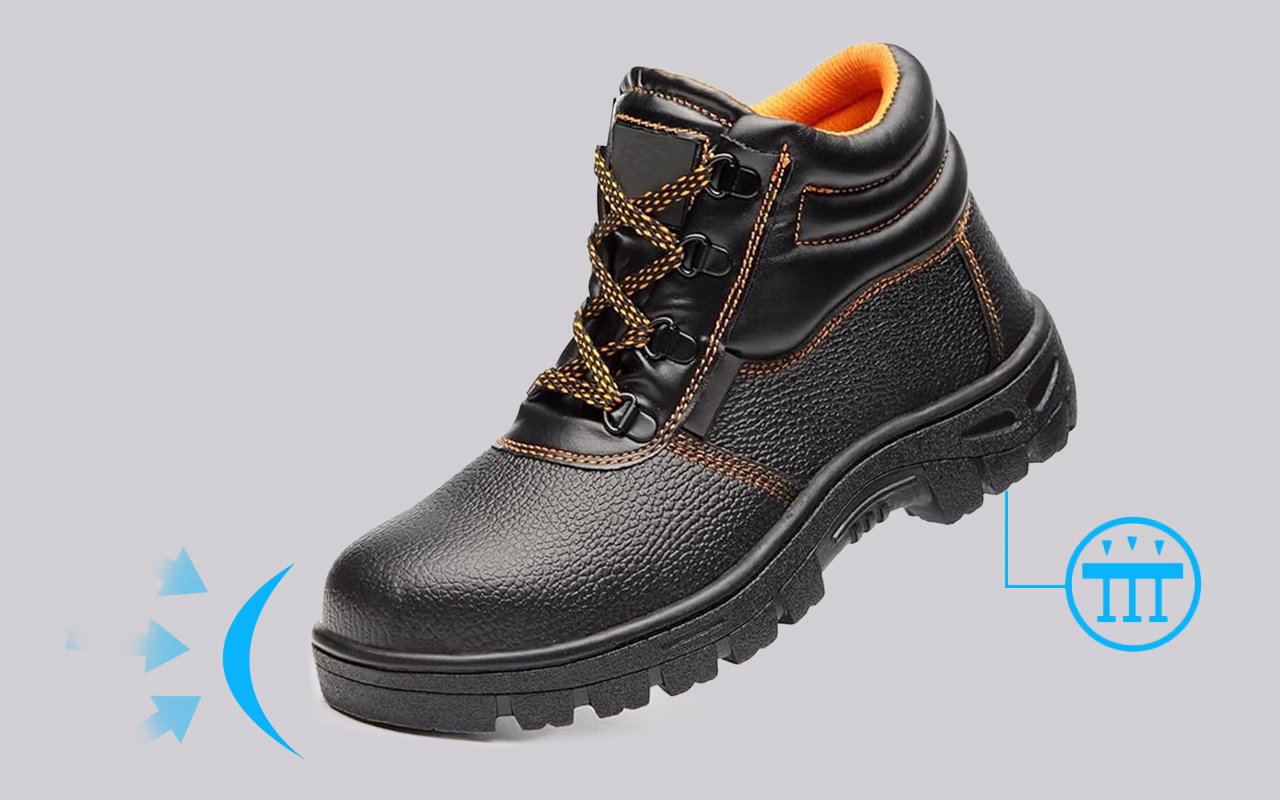 Vârfurile din oțel întărit ajută la prevenirea accidentelor de strivire la locul de muncă. Picioarele tale rămân în siguranță chiar și în preajma uneltelor căzătoare sau a echipamentului greu.