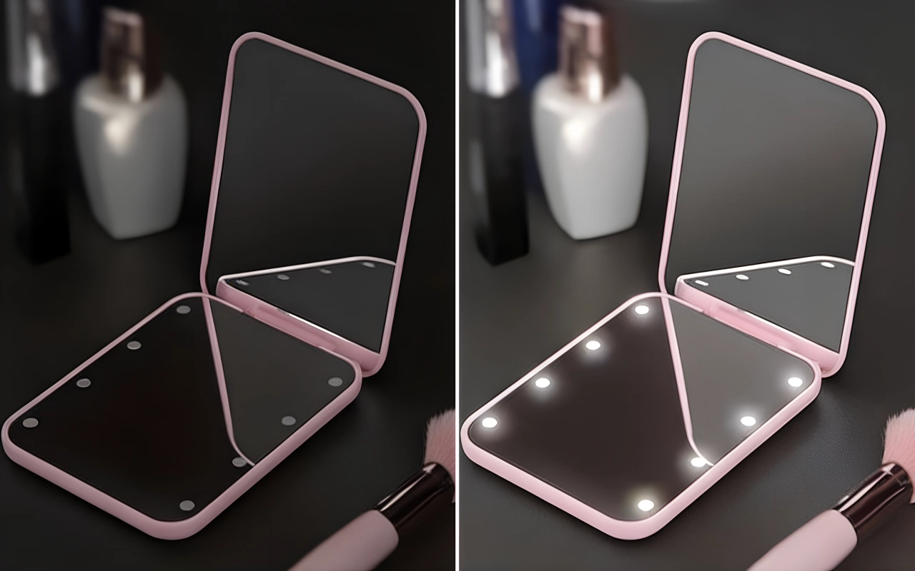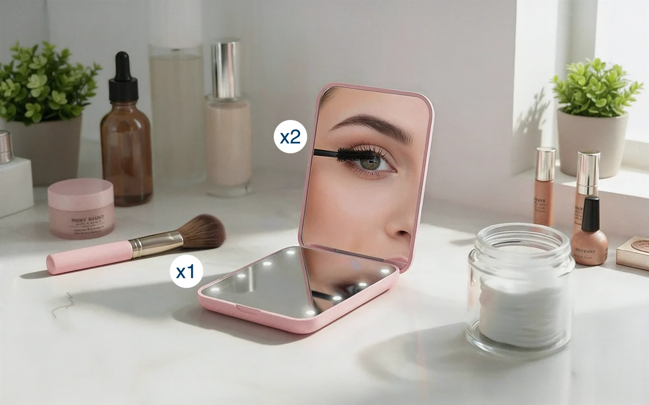 Lumini LED strălucitoare facilitează aplicarea cosmeticelor. Vizibilitatea este îmbunătățită chiar și în spații slab iluminate pentru o precizie maximă.
