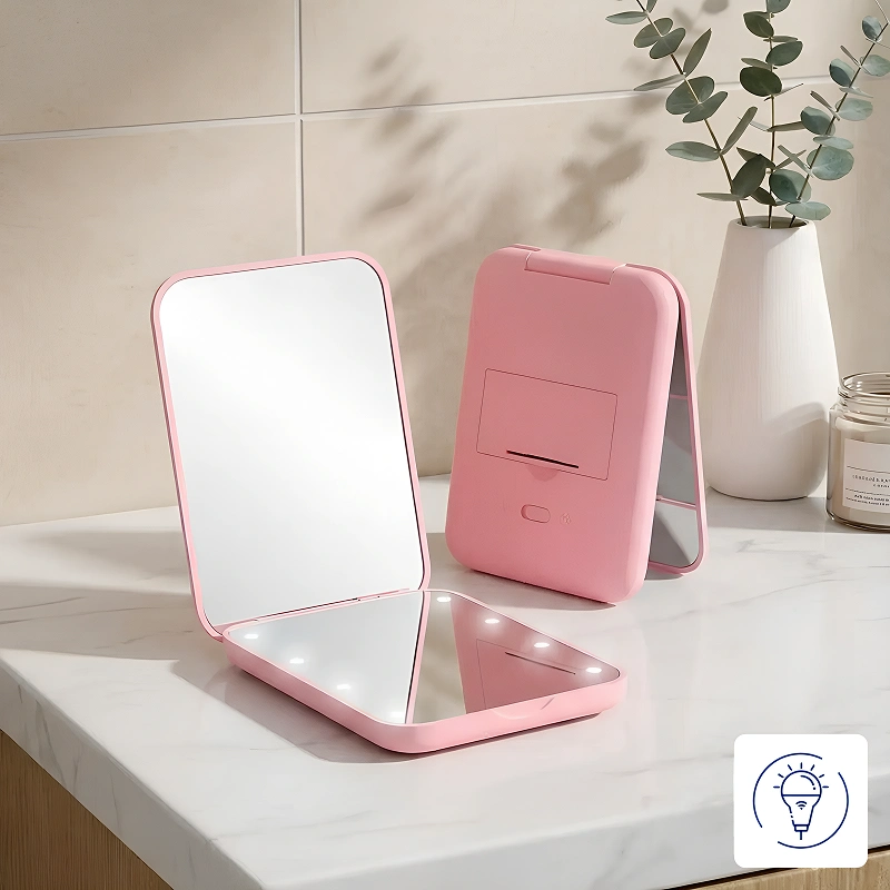 Nu mai ratez petele de rimel! Oglinda asta mică luminează incredibil de bine. Practică pentru călătorii pentru că nu ocupă loc.