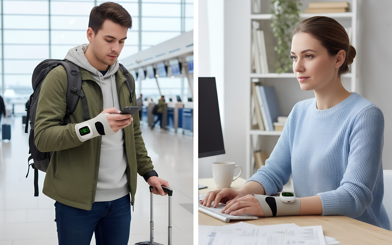 Mişcaţi-vă uşor, fără fire sau prize, oriunde mergeţi. Folosiți Ortorex la serviciu, în timpul odihnei sau de călătorie.