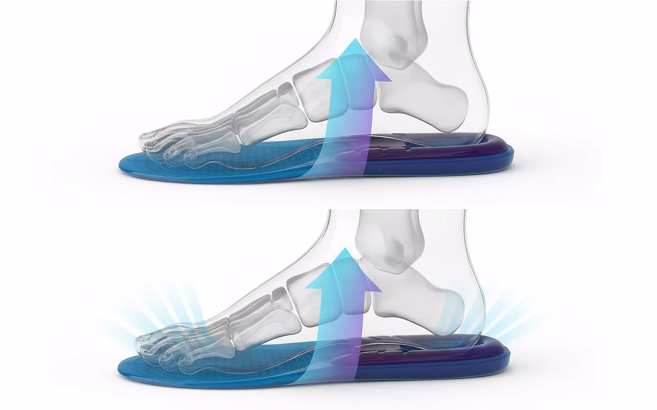 Pernele groase din gel de silice amortizează fiecare impact în timpul mersului. Articulațiile și călcâiele rămân protejate, reducând oboseala zilnică.