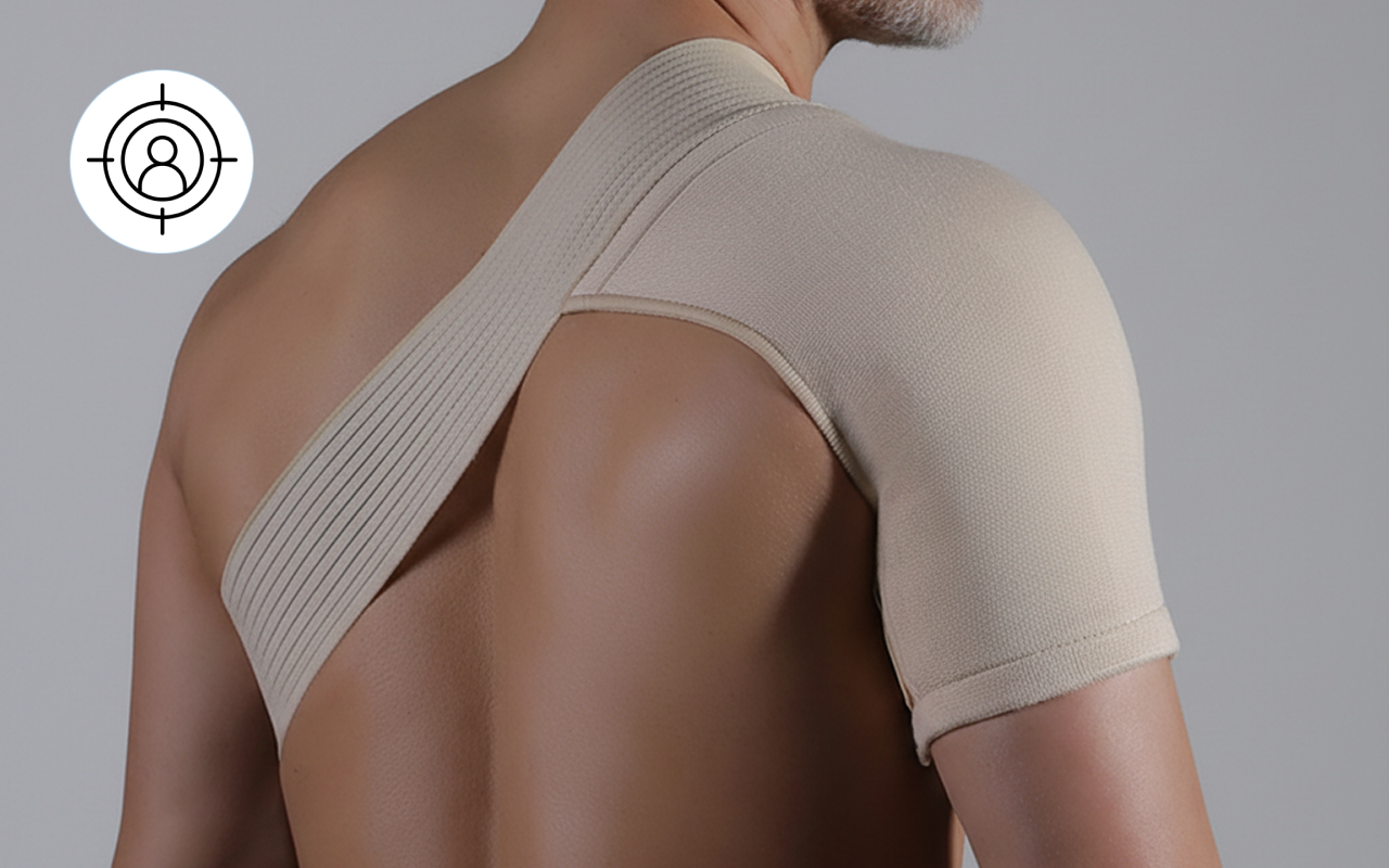 Designul conturat urmărește linia umărului pentru o fixare sigură. Rămâne stabil în timpul mișcării, fără să alunece sau să se adune.