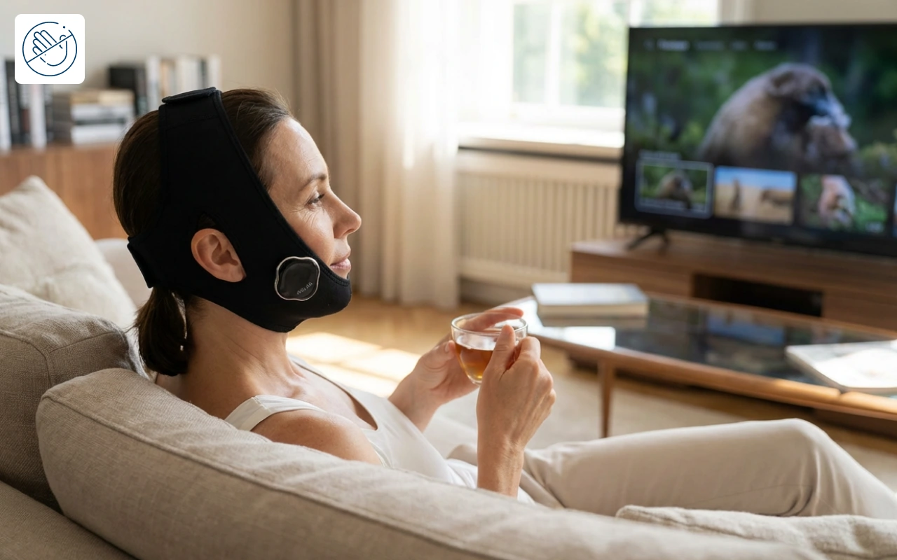 Am folosit banda de bărbie în fiecare seară în timp ce mă uit la TV, iar fața mea pare mai puțin umflată. Îmi place cât de confortabilă este siliconul pe piele.