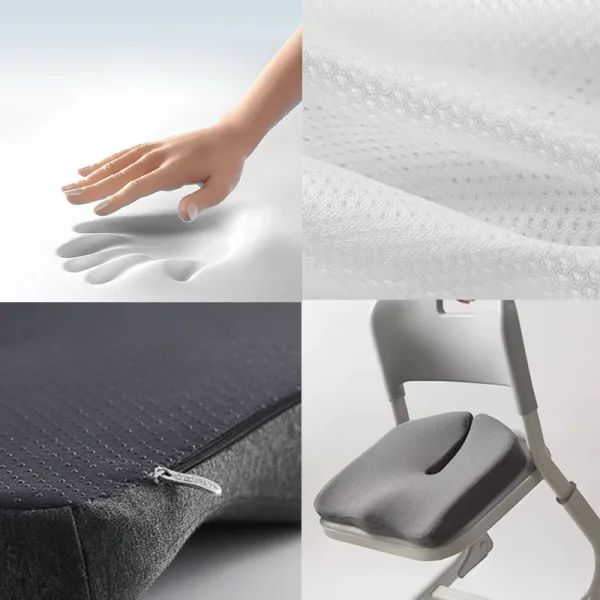 Designul țintit din spumă cu memorie ameliorează rapid și delicat durerile. Statul pe scaun devine din nou plăcut pe măsură ce tensiunea dispare.