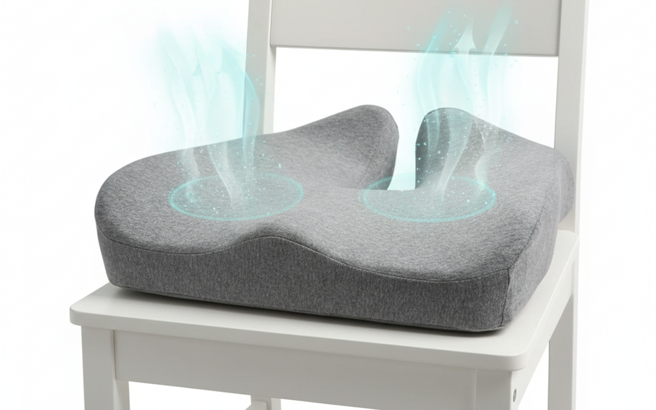 Recomand această pernă oricui stă jos ore întregi zilnic. Durerea de coccis a dispărut și materialul nu se încălzește niciodată. Scaunul e mult mai confortabil acum.