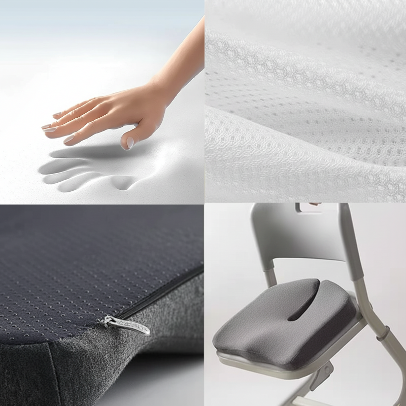 Recomand această pernă oricui stă jos ore întregi zilnic. Durerea de coccis a dispărut și materialul nu se încălzește niciodată. Scaunul e mult mai confortabil acum.