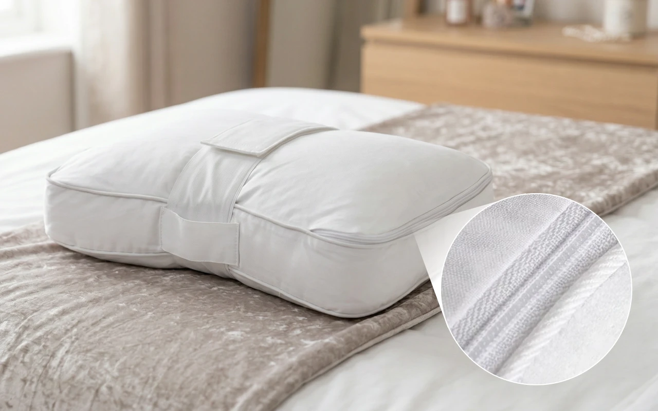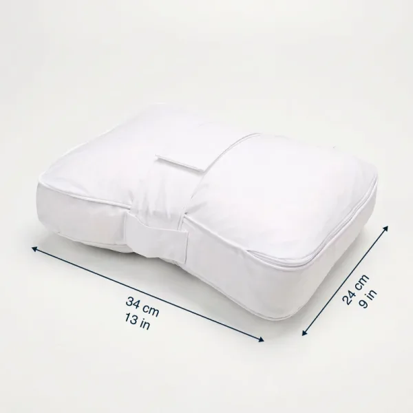 Husa detașabilă se spală ușor în orice mașină de spălat de acasă. Cureaua reglabilă menține totul bine fixat pentru nopți liniștite.