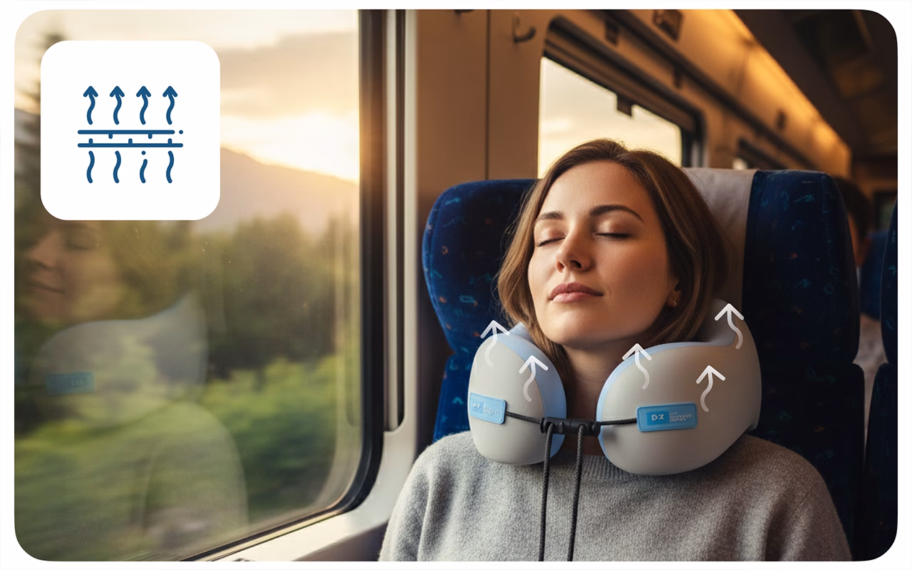 Călătoriile lungi provoacă adesea dureri de umeri, spate înțepenit și minți obosite. Perna Ortorex îți susține delicat capul și postura. Fiecare drum pare mai scurt și mult mai plăcut pentru toată lumea. Relaxează-te ușor, știind că confortul și sănătatea sunt mereu la îndemână.