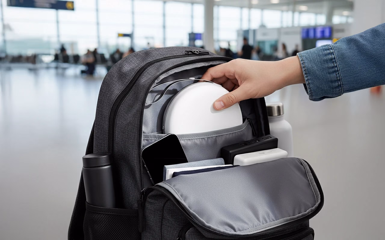 Încape într-o husă mică, economisind spațiu prețios în bagaj. Ia-o oriunde, de la avion la călătorii cu mașina, fără bătăi de cap.