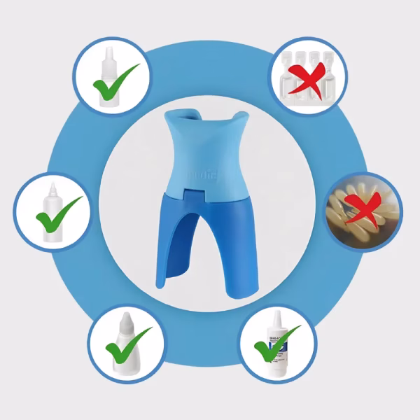 Distribuitorul de picături Ortorex face tratamentele pentru ochi rapide și fără murdărie. Designul său inteligent ajută la poziționarea sticlei exact acolo unde ai nevoie. Fără clipit excesiv, dificultăți sau picături ratate.