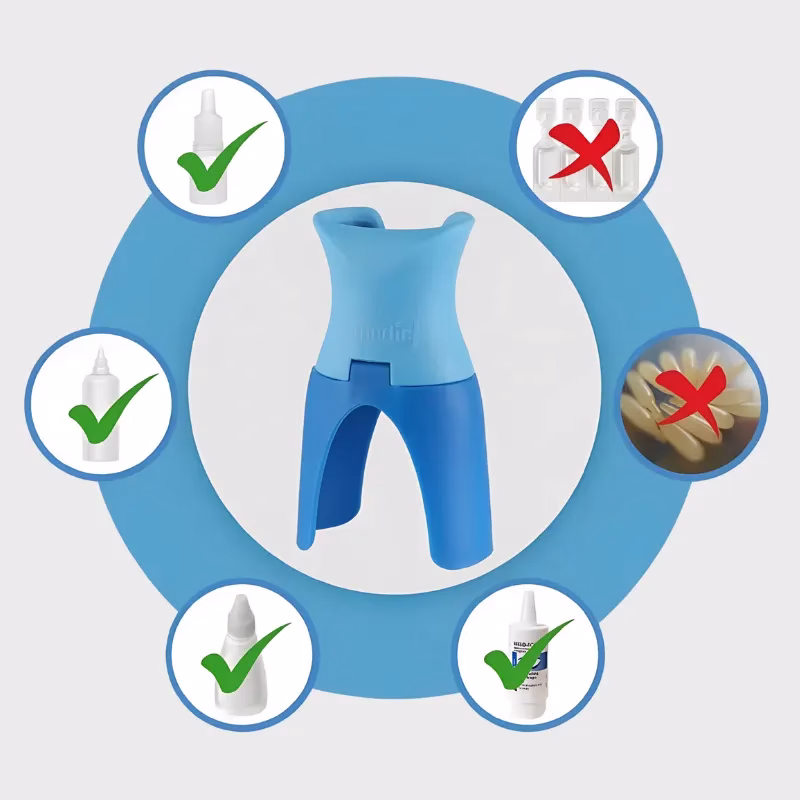 Distribuitorul de picături Ortorex face tratamentele pentru ochi rapide și fără murdărie. Designul său inteligent ajută la poziționarea sticlei exact acolo unde ai nevoie. Fără clipit excesiv, dificultăți sau picături ratate.