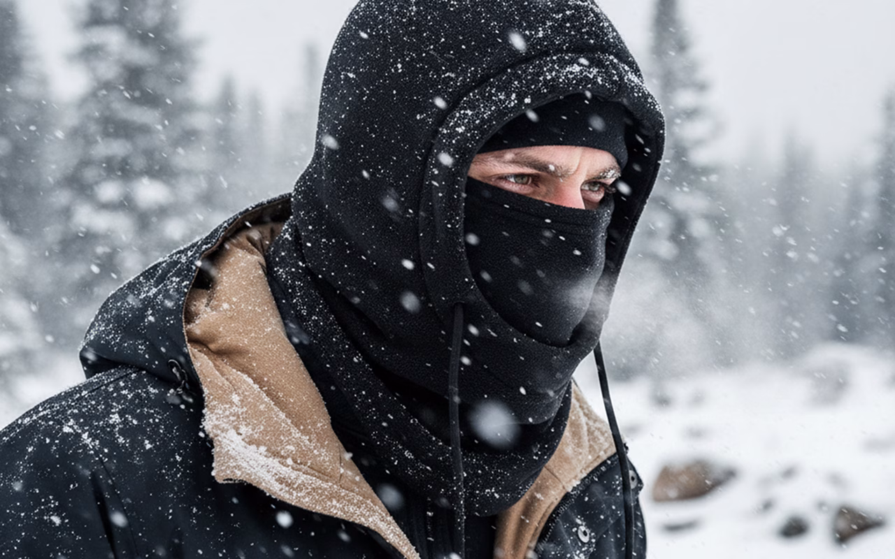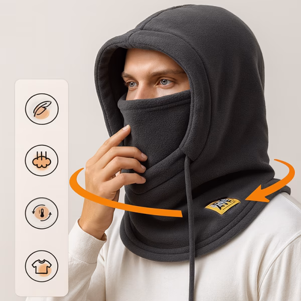 Cagulă de iarnă din fleece – mască călduroasă cu glugă și fular