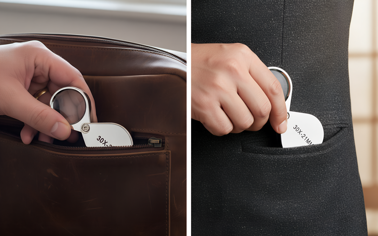 Rama ușoară se strecoară cu ușurință în orice buzunar sau săculeț. Aveți mereu o mărire puternică la îndemână oriunde mergeți.