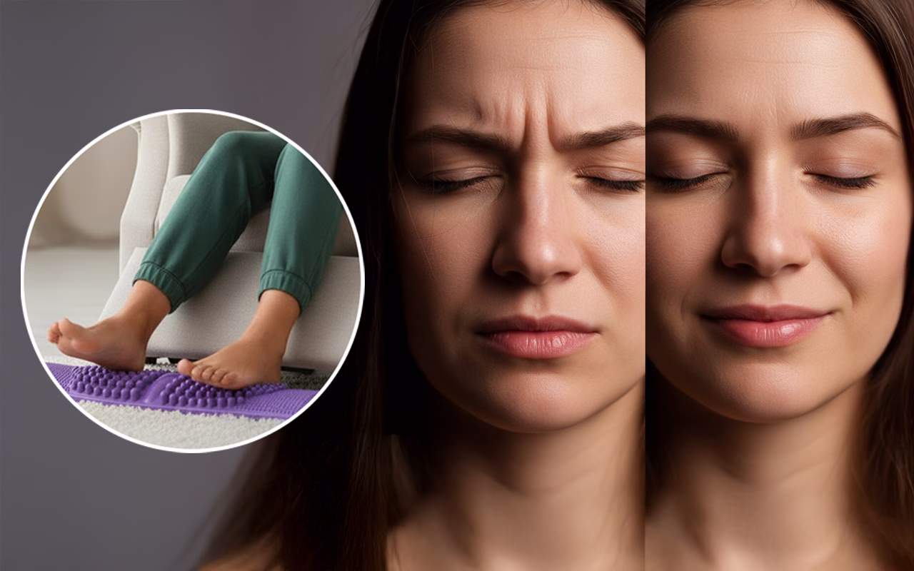 Acupresiunea delicată ajută la relaxarea minţii şi a corpului în mod natural. Tensiunea dispare în timp ce te bucuri de un moment liniştit.