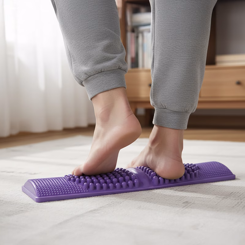 Și copiii mei îl adoră—e amuzant să simți micile denivelări la călcâie! Facem un joc: cine poate sta cel mai mult.