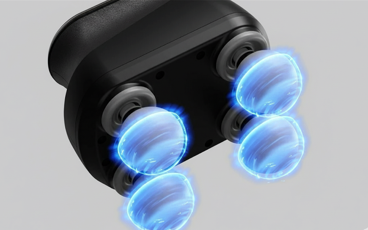 Patru capete funcționează împreună, oferind confort pe o suprafață largă. Relaxează-ți spatele, umerii sau picioarele mai rapid ca niciodată.