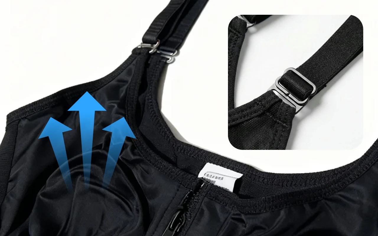 Materialul moale permite pielii să respire și conferă siguranță. Bretelele reglabile asigură o potrivire perfectă pentru orice tip de corp.