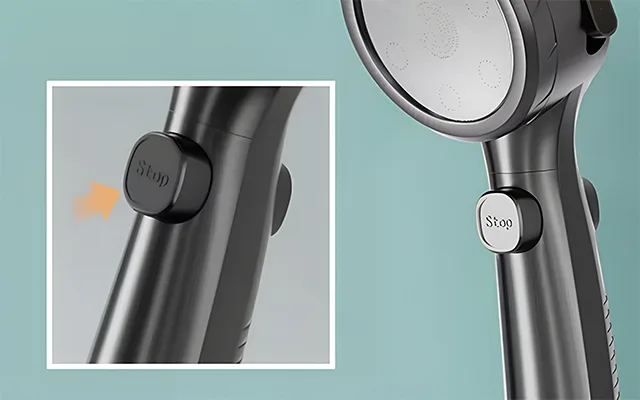 Poți opri cu ușurință jetul de apă cu o singură apăsare. Această funcție ajută la șamponare sau săpunire, oferindu-ți un control mai bun asupra consumului de apă.