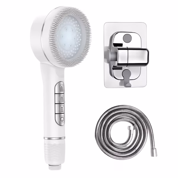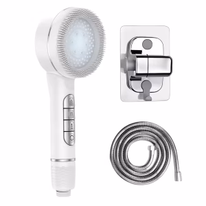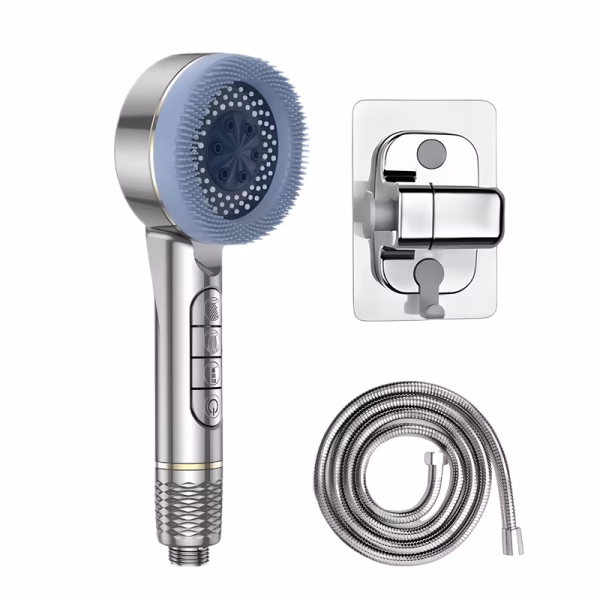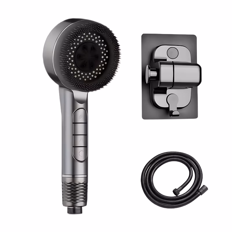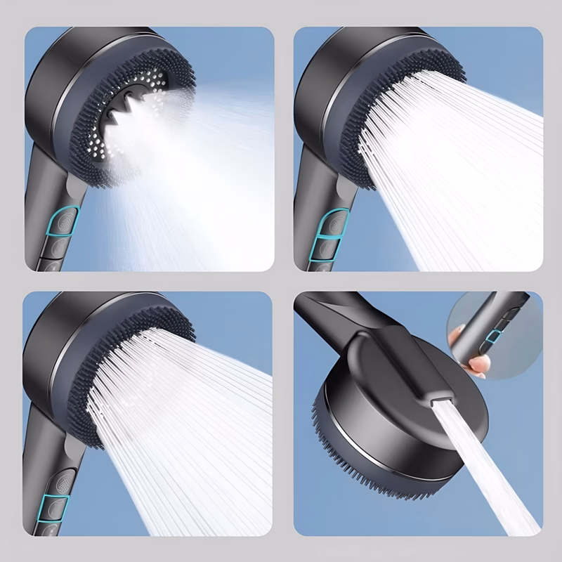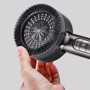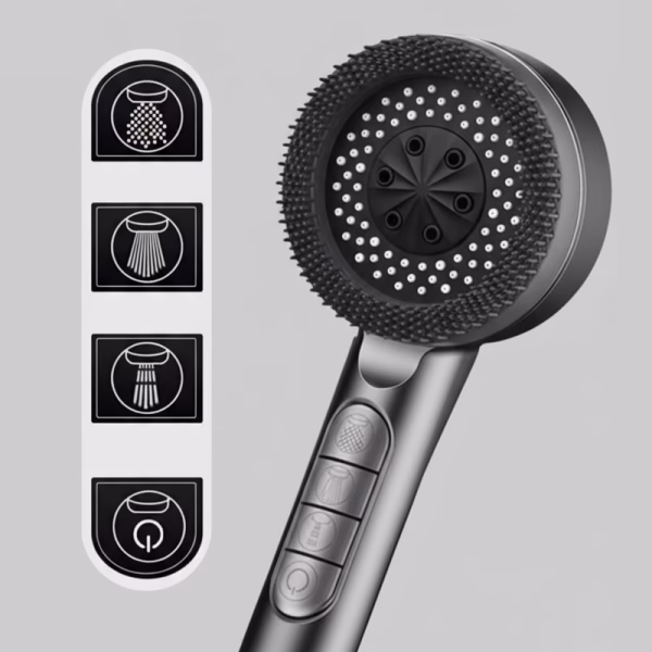Peria din silicon a îndepărtat ușor depunerile de săpun. Acum dușurile mele sunt o plăcere zilnică. Butonul insta-stop e foarte practic.