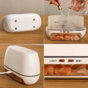 Familia mea a observat o îmbunătățire mare când aerul devine uscat și folosim acest aparat. Cristalele de sare sunt o adiție interesantă și nu face niciun zgomot.